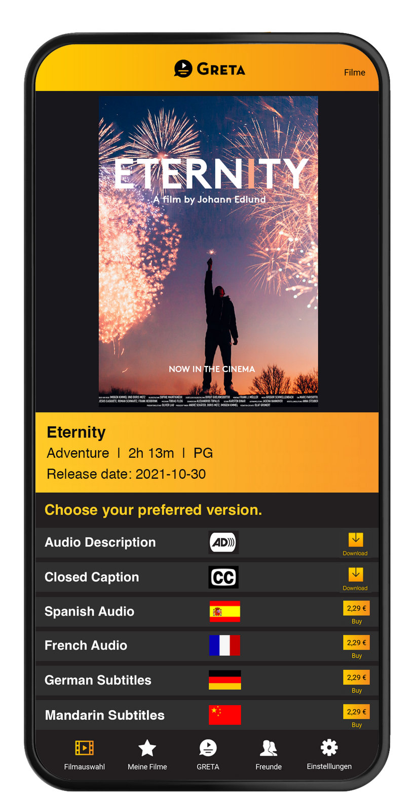 GRETA-appen tilbyr  OFFISIELLE filmversjoner på forskjellige språk og lydbeskrivelser / teksting.